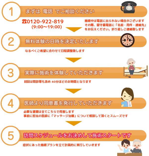 訪問マッサージ・鍼灸治療 ご利用の流れ